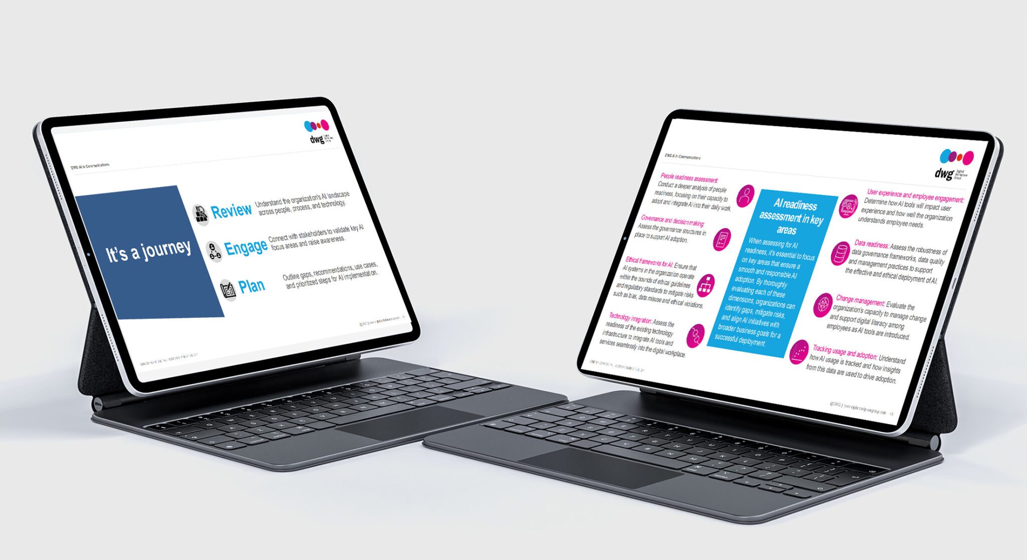 DWG ran a four-hour strategic workshop for the Corporate Communications leadership team. The goal was to move from isolated AI experiments to an enterprise-level strategy. Our customized agenda included modules on governance, risk management and ROI measurement – critical considerations in an industrial context.